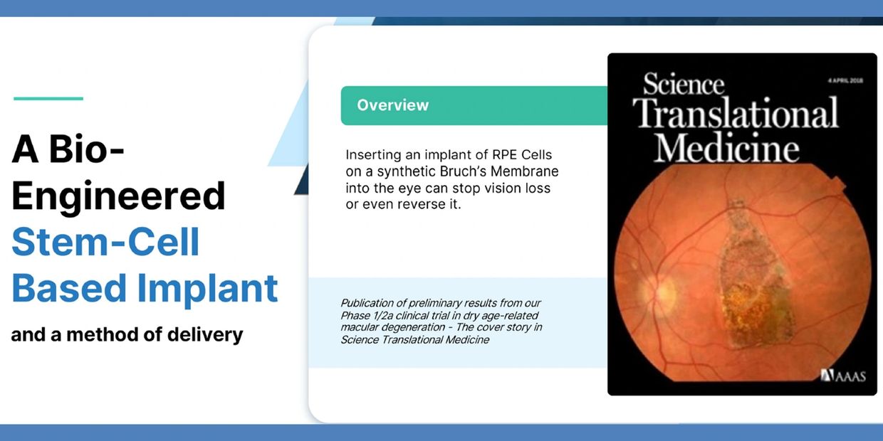 The stem cell-based implant aims to promote the survival and function of the retina, protecting the eye from disease progression and potentially improving vision.