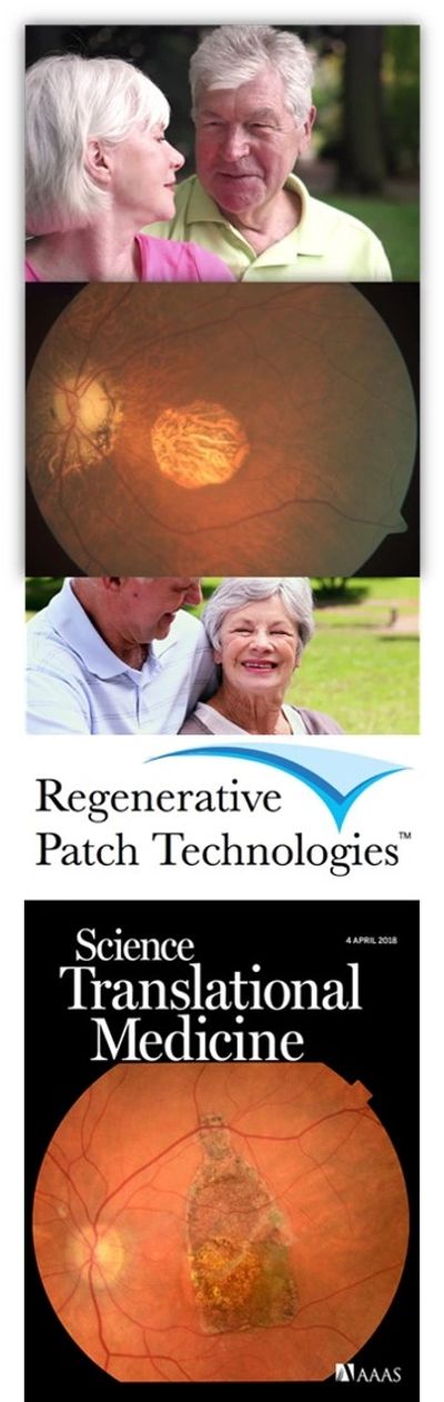 Regenerative Patch Technologies, LLC (RPT) is a California based company that is developing cell-based implant technology for the treatment of retinal diseases. Their lead product, CPCB-RPE1 is a bioengineered, ultrathin implant covered with a single layer of mature RPE cells and is currently being evaluated in clinical trials. This implant is designed to replace RPE cells that have been lost or damaged in eyes with GA. The implant is carefully delivered to the back of the eye, in the area of GA, in the subretinal space (under a layer of the retinal ‘wallpaper’) where the eyes own cells have been damaged or lost. The procedure is completed as an outpatient day-surgery, under general anesthetic.